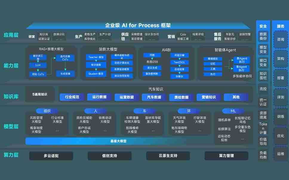 端到端的一站式AI工作空间深度融合了从企业战略规划到日常经营的全流程业务板块,,,,定向解决车企内部领域多、、部门多、、、、链条长、、、场景碎片化等难题,,支持车企快速构建以AI为核心的生产力写作体系,,,实现任务执行与AI能力的无缝集成与交互